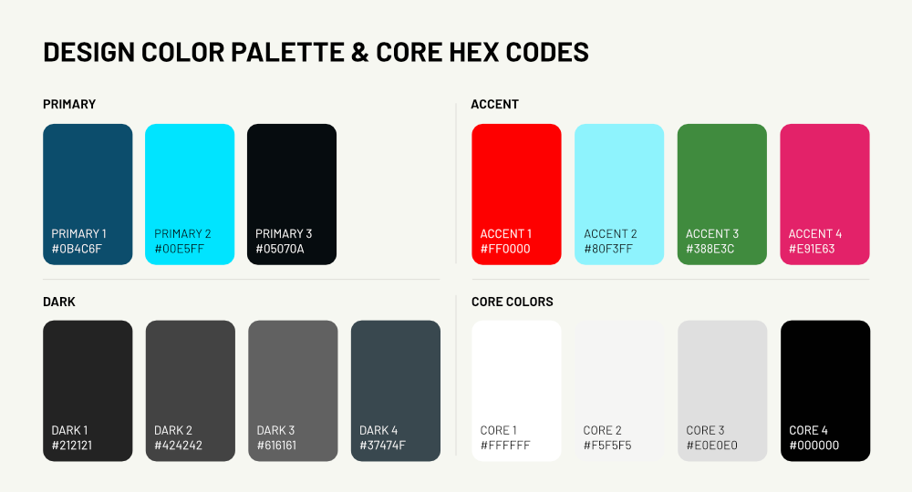 Light, dark, and primary color variants.